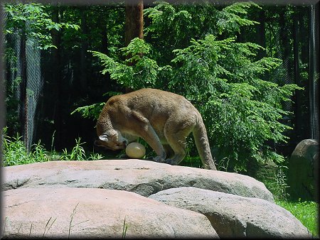 The following photos were taken by me or my daughter, Christy, who is pictured in the first photo. She works some at the Western North Carolina Nature Center, which has two cougars in their cougar habitat. The cougars in these photographs are named Val and Satch. I think she is really lucky to work with them.